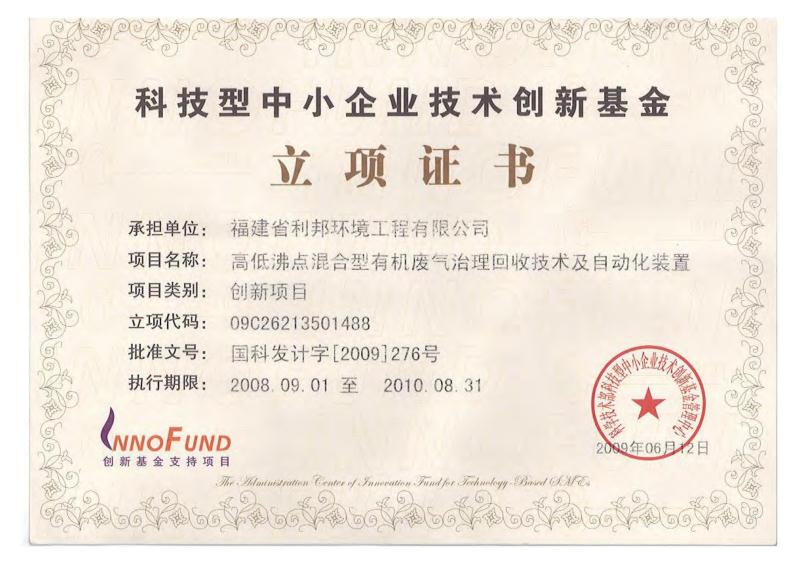 福建省科技型企業(yè)、福建省創(chuàng)新性企業(yè)、福建省首批科技小巨人、福建省“專精特新”專業(yè)化企業(yè),擁有企業(yè)研發(fā)中心、福建省有機廢氣凈化設(shè)備工程技術(shù)研發(fā)中心;公司產(chǎn)品獲得科技部、環(huán)保部、商務(wù)部、國家質(zhì)量監(jiān)督總局頒發(fā)的“國家重點新產(chǎn)品”證書,“中低濃度揮發(fā)性有機物回收凈化裝備”被列入《國家鼓勵發(fā)展的重大環(huán)保技術(shù)裝備目錄(2017年版)》;公司核心發(fā)明專利分別獲得了中國專利獎優(yōu)秀獎、福建省專利獎二等獎等專利獎項,其中兩個核心技術(shù)分別獲得福建省技術(shù)發(fā)明獎二等獎、福建省科學(xué)技術(shù)進步獎二等獎;公司